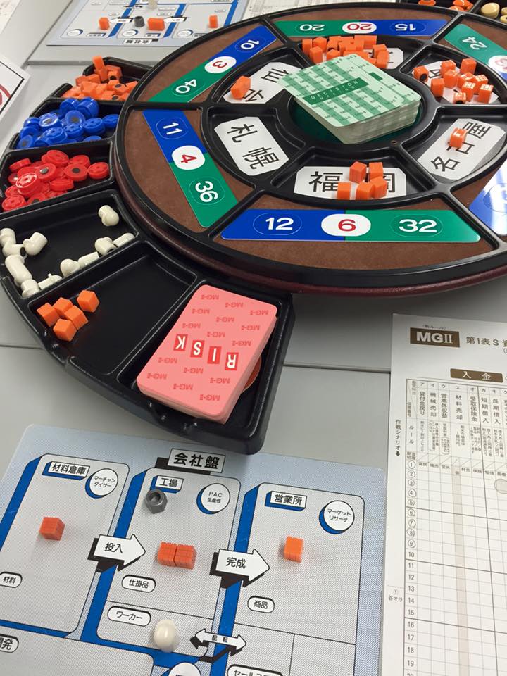マネージメントゲームを通して、一期(材料の仕入れや加工・販売、人事や宣伝など)をボードゲームで実践しながら、決算書を作成しました。